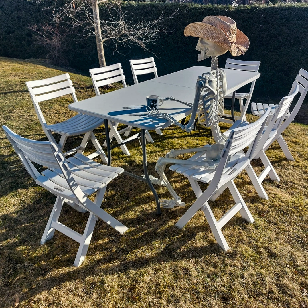 Mutta se per…än lepuutuspisteen hankkiminen kesän kinkereihin on usein aika tuskaisaa. Kun keittiön pöydän tuolit, vaarin nojatuoli ja muorin keinutuoli on raijattu sisältä ulos, puuttuu paikka enää lopuilta kolmeltakymmeneltä.